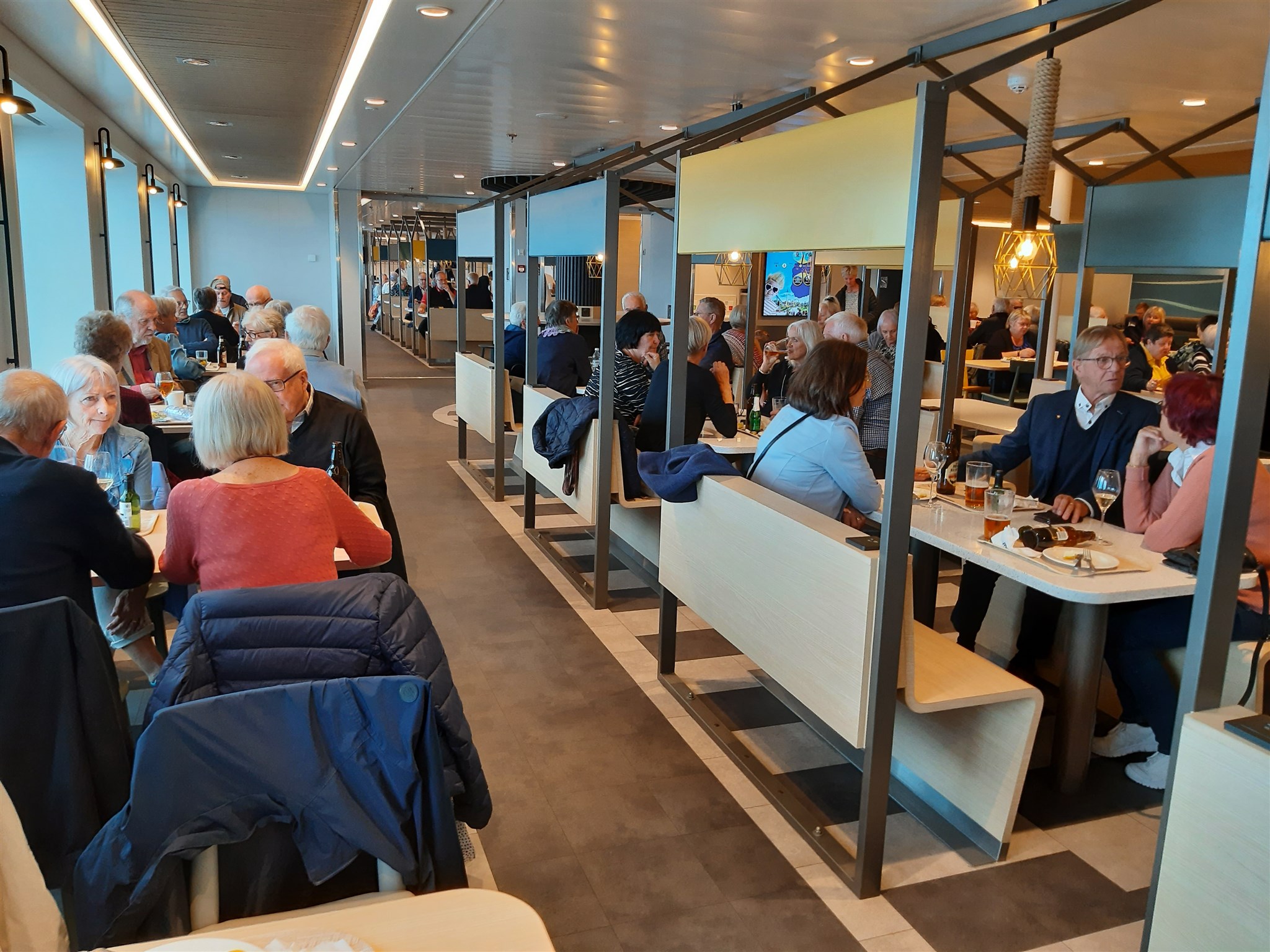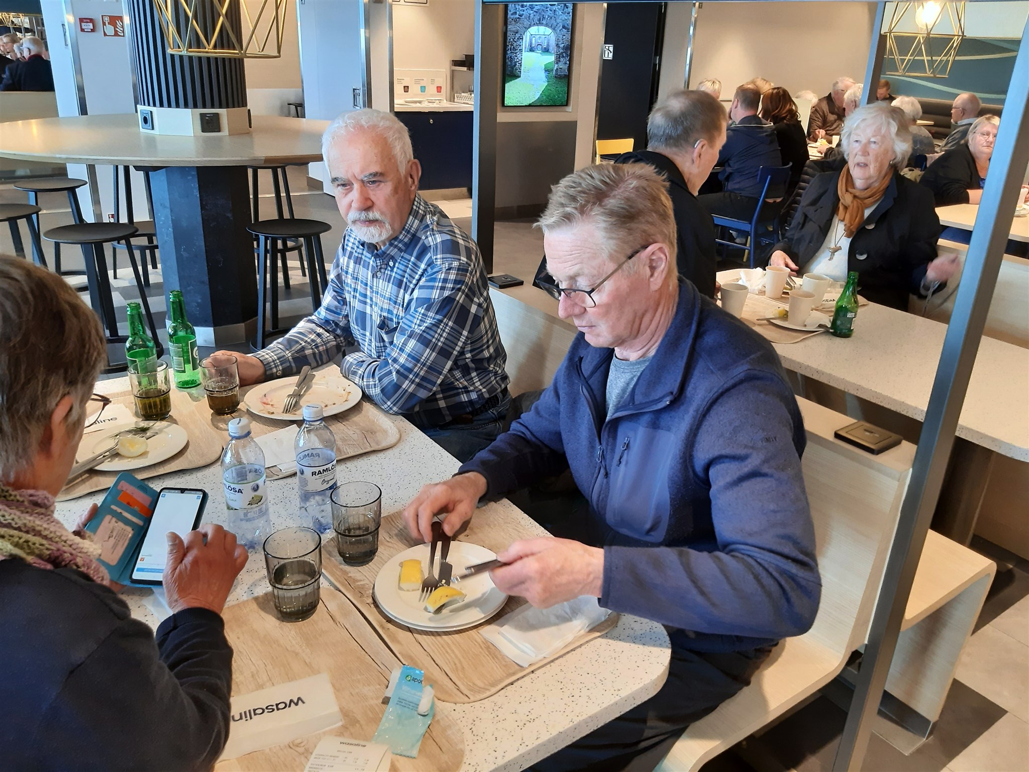Polispensionärsklubben samlad i matsalen ombord på färjan