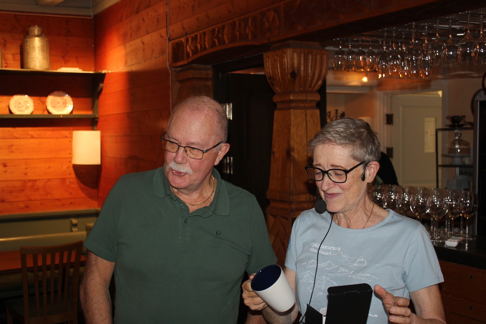 Ordförande Jerry Sandström tackar Undis med en minnesgåva från Polispensionärerna
