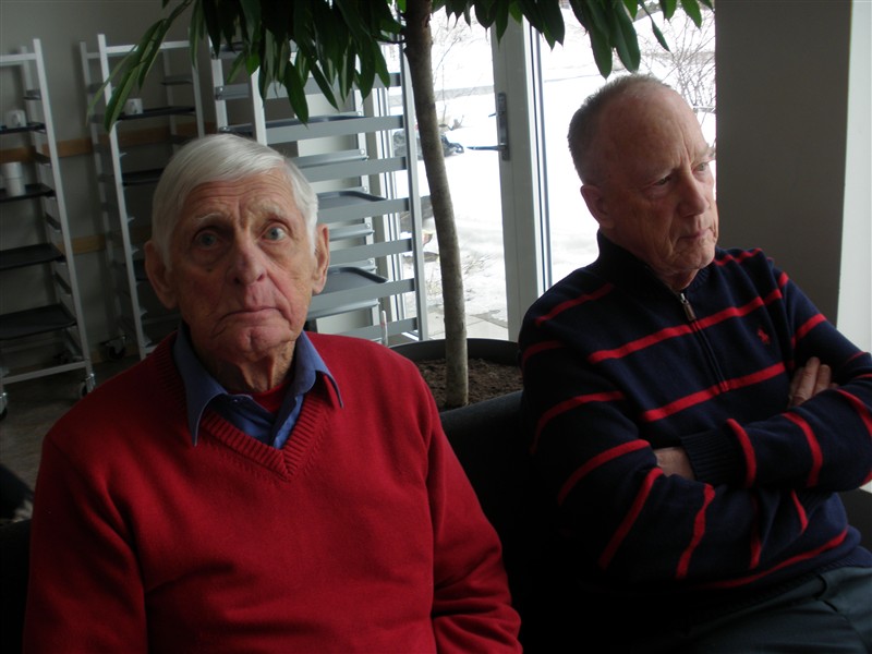 Nils-Ivar Holmgren och Lennart Westmark njuter av en kopp kaffe