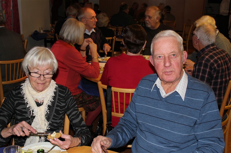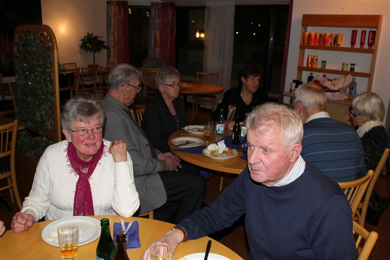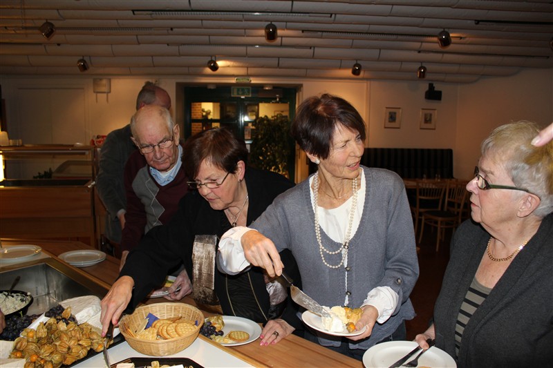 Helge Nygren, Helena Brännström, Ulla Bergqvist och Berit Johansson förser sig från ostbrickan