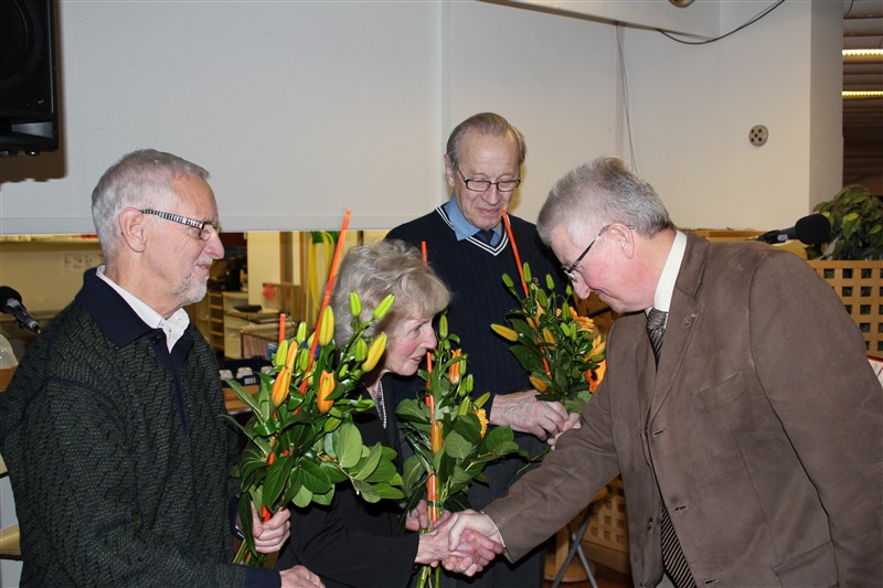 Uppvaktning av födelsedagsbarnen Rolf Westerlind, Gun Nordling och Martin Wiklund
